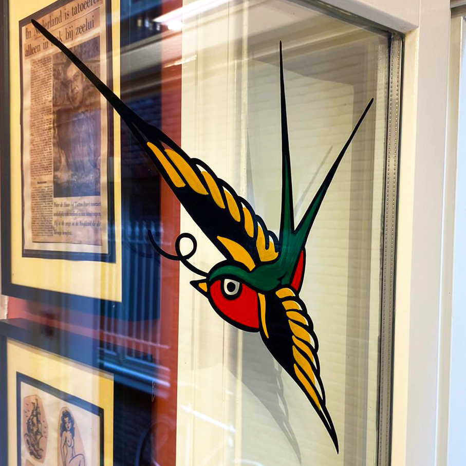 Onze (freestyle) letters en illustraties passen bij uitstek bij tattoo shops. Hoe kun je beter de kunst van handwerk benadrukken in een shop dan met een handgeschilderde gevel of ruit? We kunnen uitgewerkte ideeën nauwkeurig uitvoeren, waardoor onze ontwerpen lekker aansluiten bij de visie van elke shop.