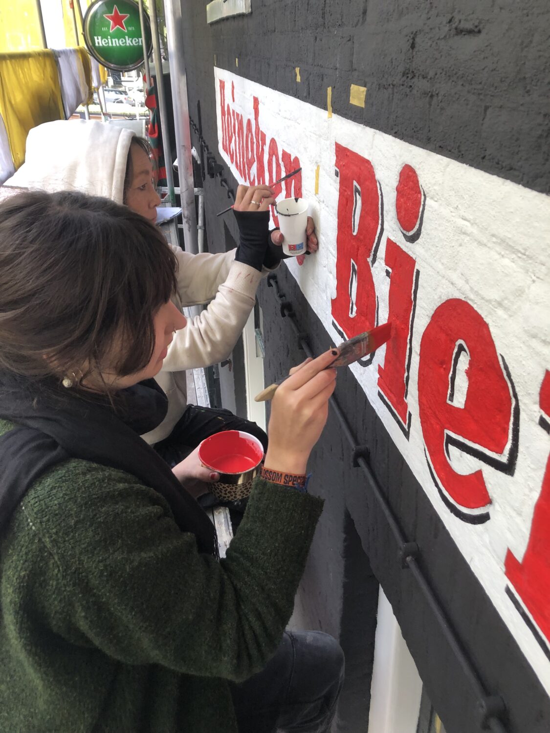 Café De Eland hebben we in originele staat teruggebracht! De krulletter voor Heineken Bier is opnieuw getekend en geschilderd. Deze sluit aan bij de originele letters van Leo Beukeboom. Tevens is het huisnummer opnieuw geschilderd.